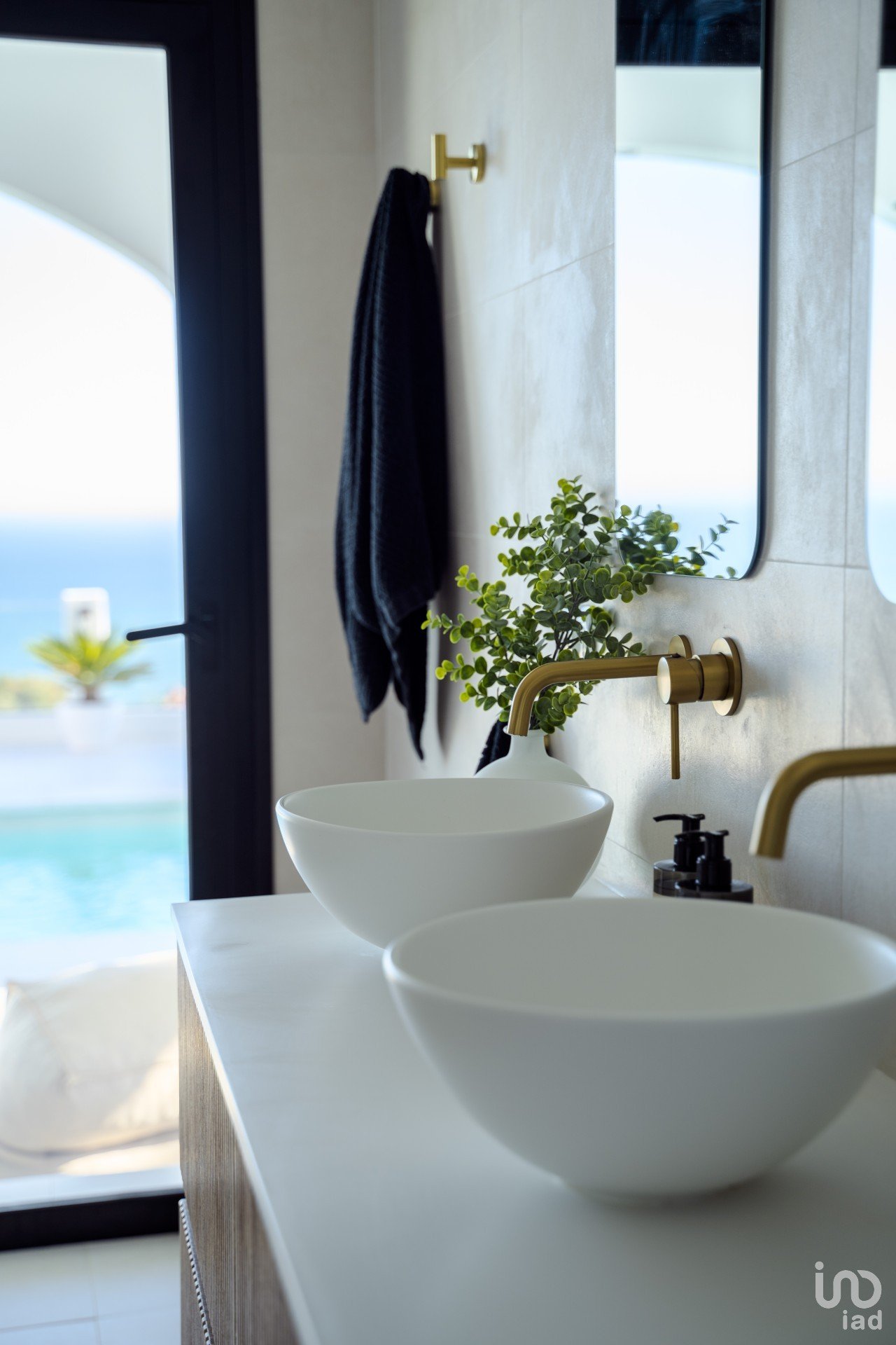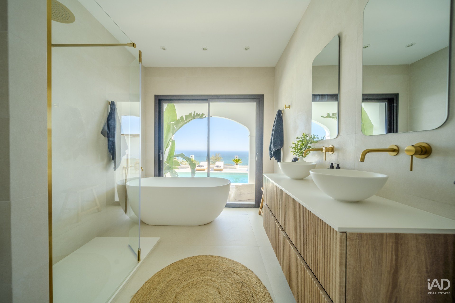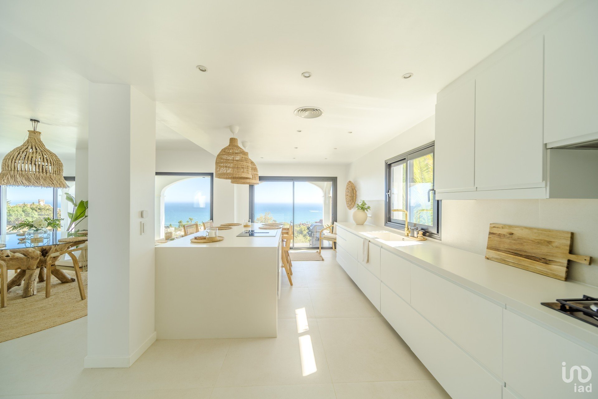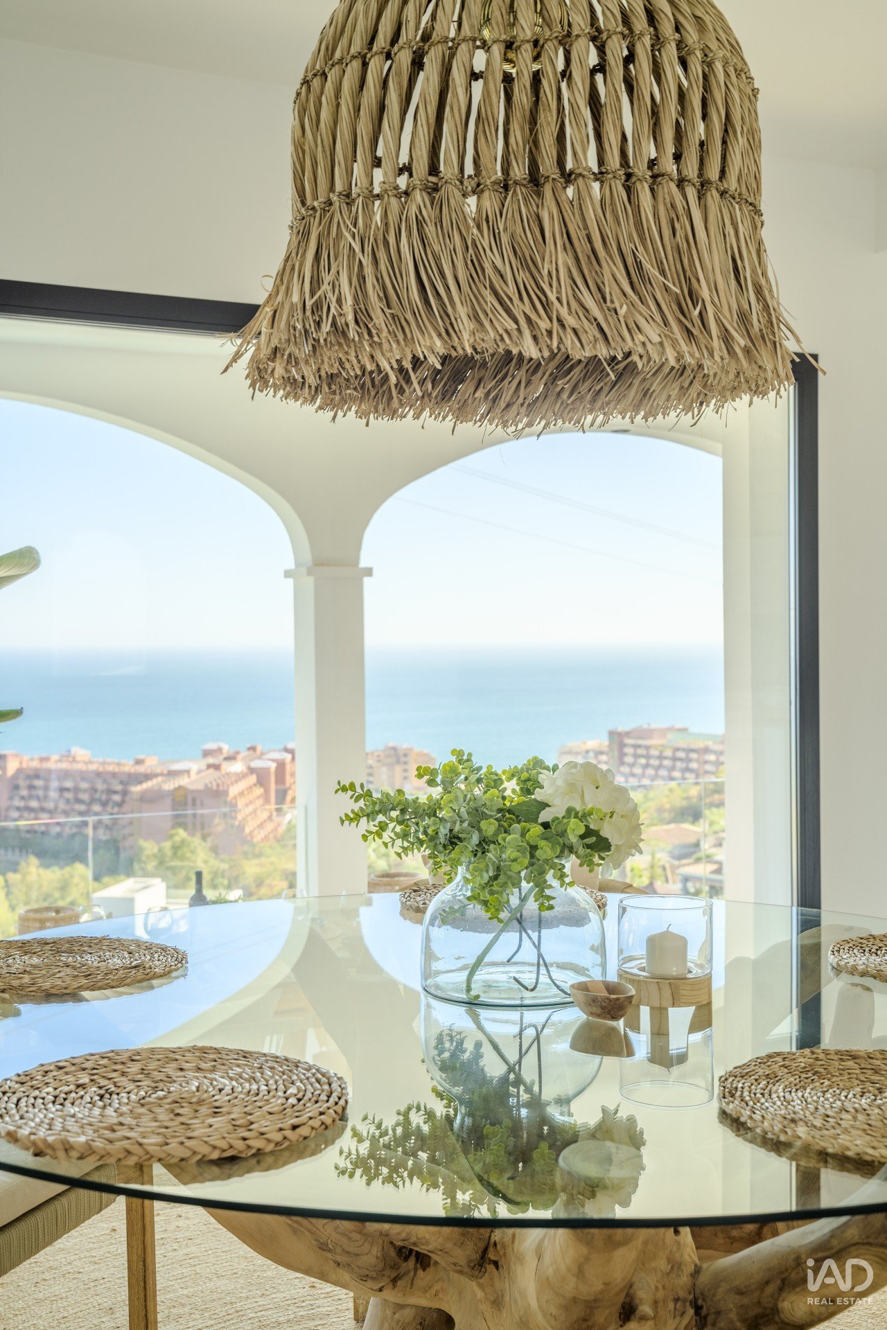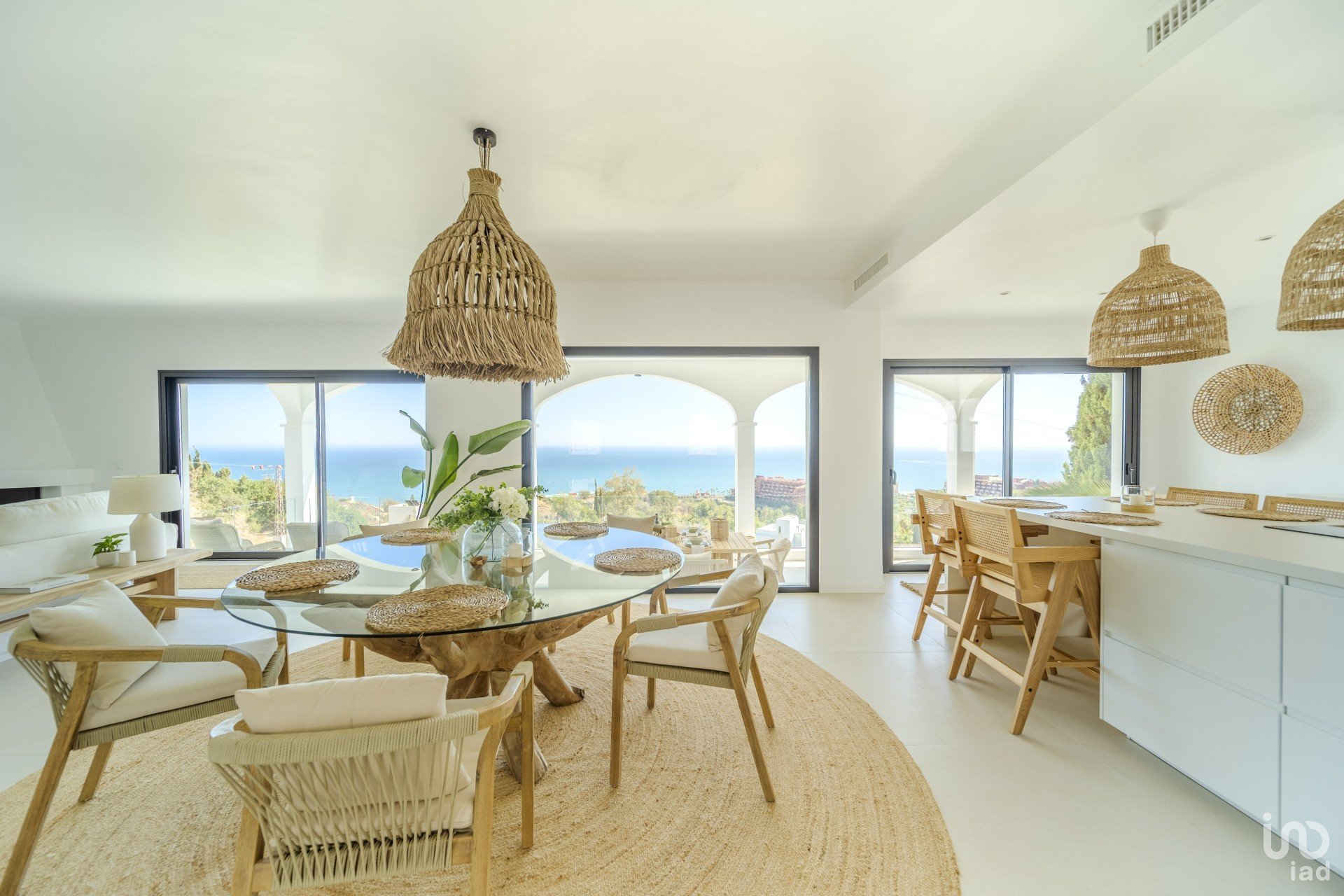 UPON entering the villa, you are welcomed by a grand entrance that leads to a spacious living room with large windows showcasing the breathtaking views of the sea and garden.