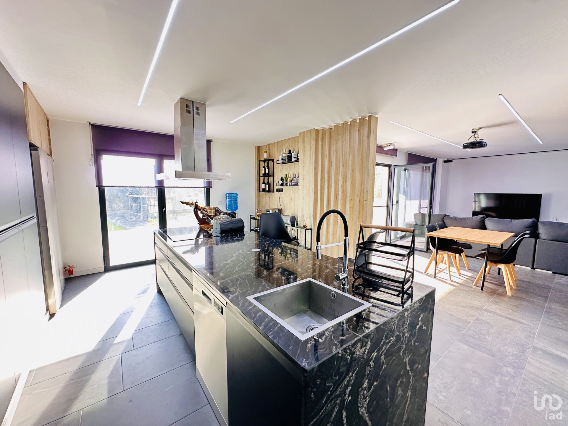 Upon entering, you are greeted by a spacious living room full of natural light, connected to a modern, fully equipped open-plan kitchen. Large windows lead directly to the garden, where you will enjoy the private swimming pool, a cosy barbecue area, games area, bar and a complete outdoor bathroom, perfect for outdoor gatherings.