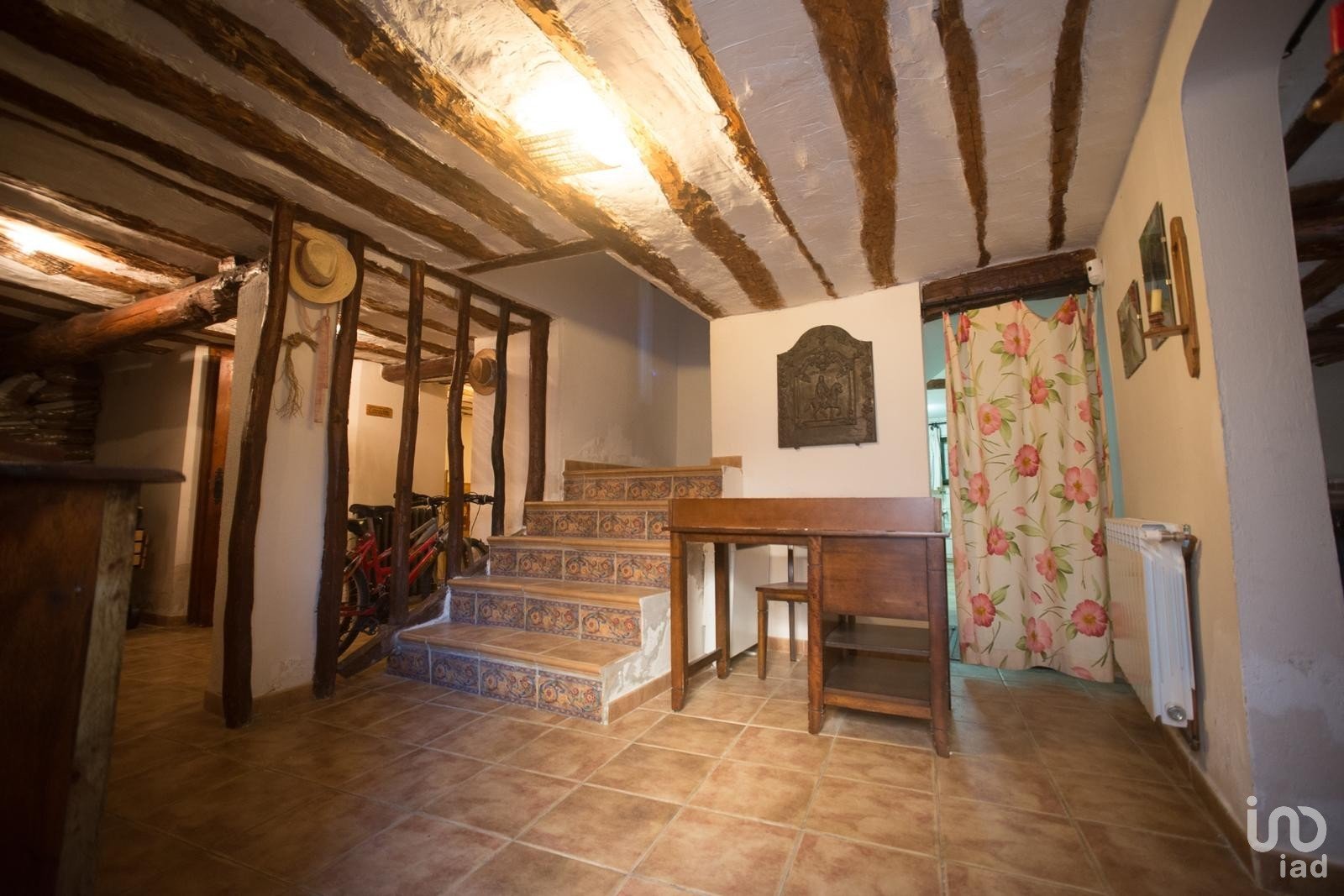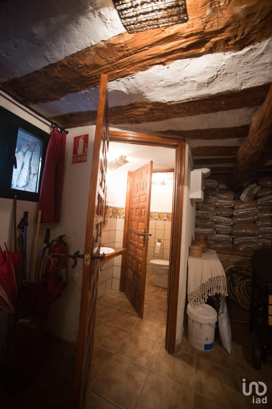 Cuenta con puerta de acceso a la calle con reja, suelos de gres, ventanas climalit verdes batientes para un óptimo aislamiento, una impresionante escalera vista y vigas de madera que aportan un encanto rústico y auténtico.