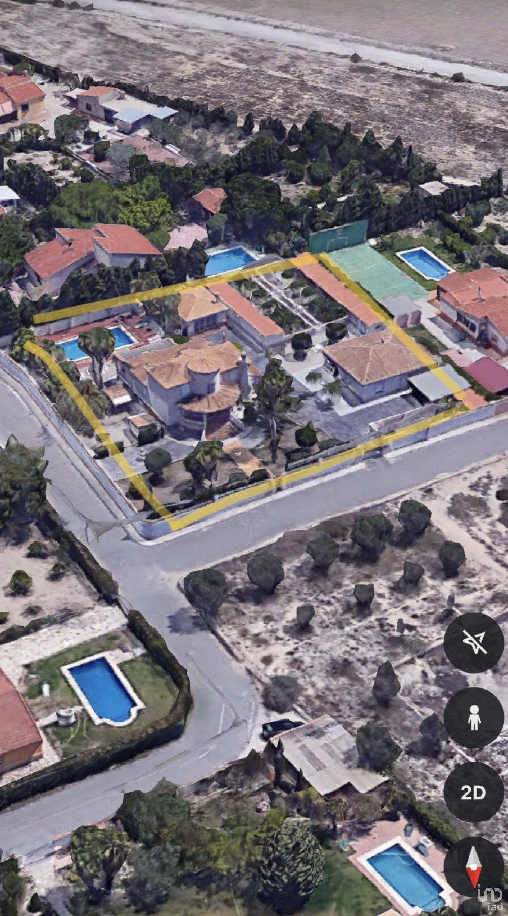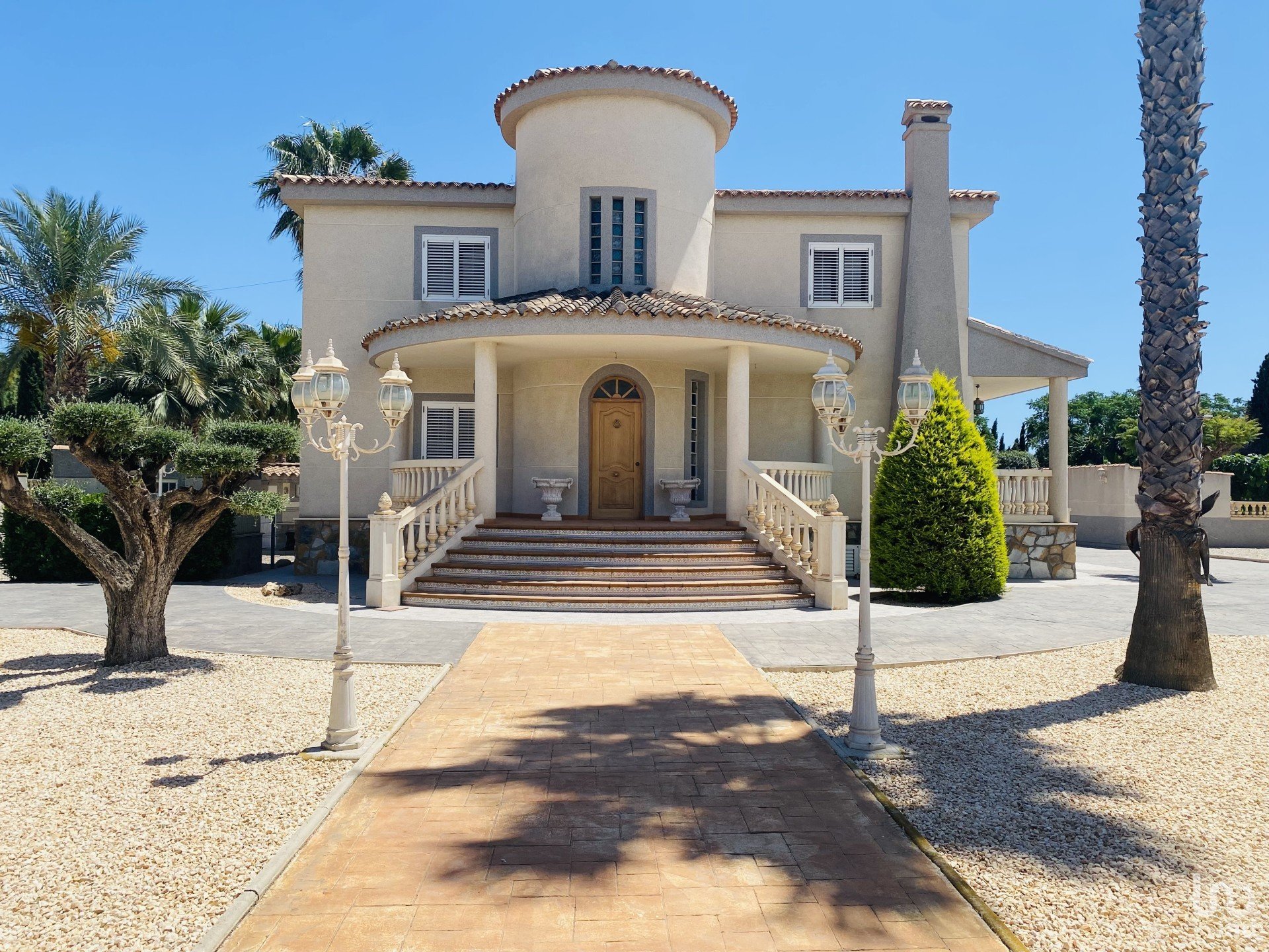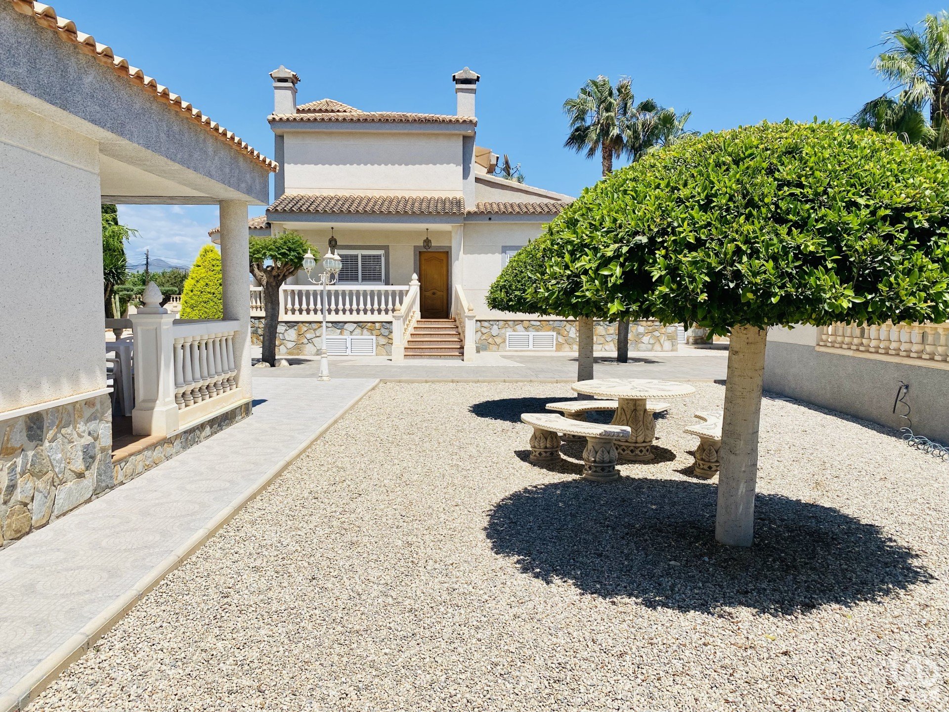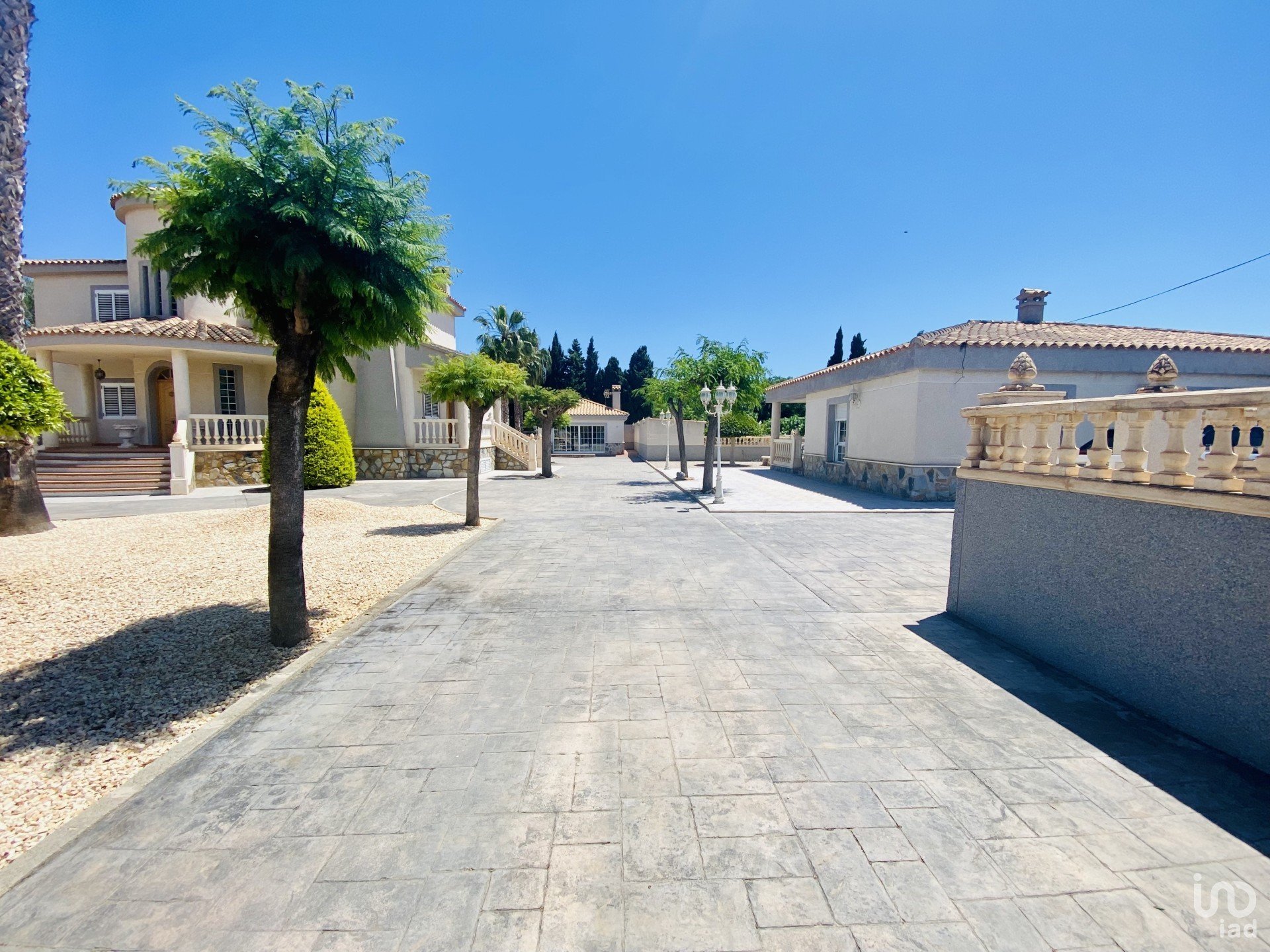 Large outdoor areas with palm trees, olive trees and other trees. Possibility of using the land for various activities, such as the installation of a paddle tennis court.