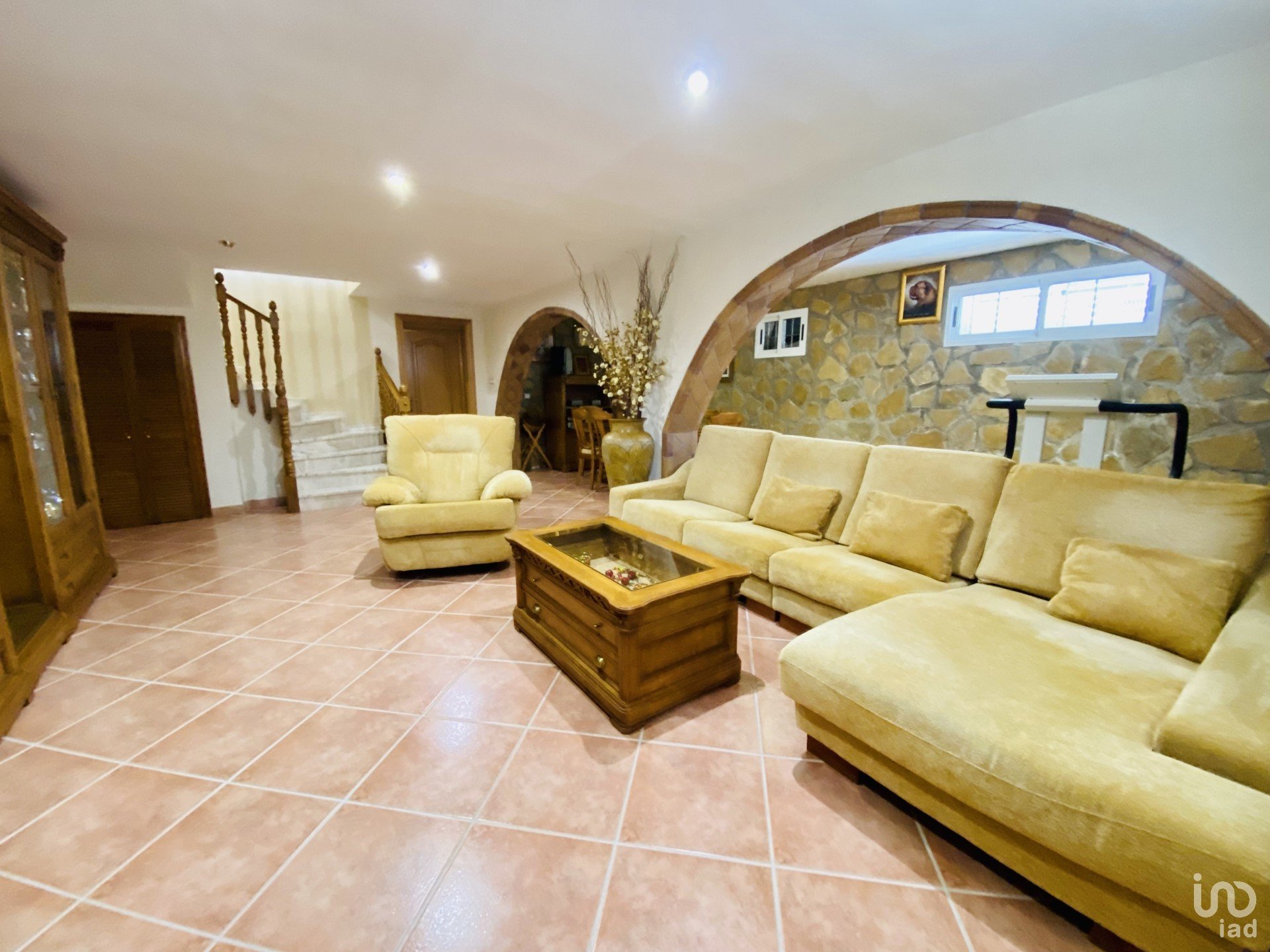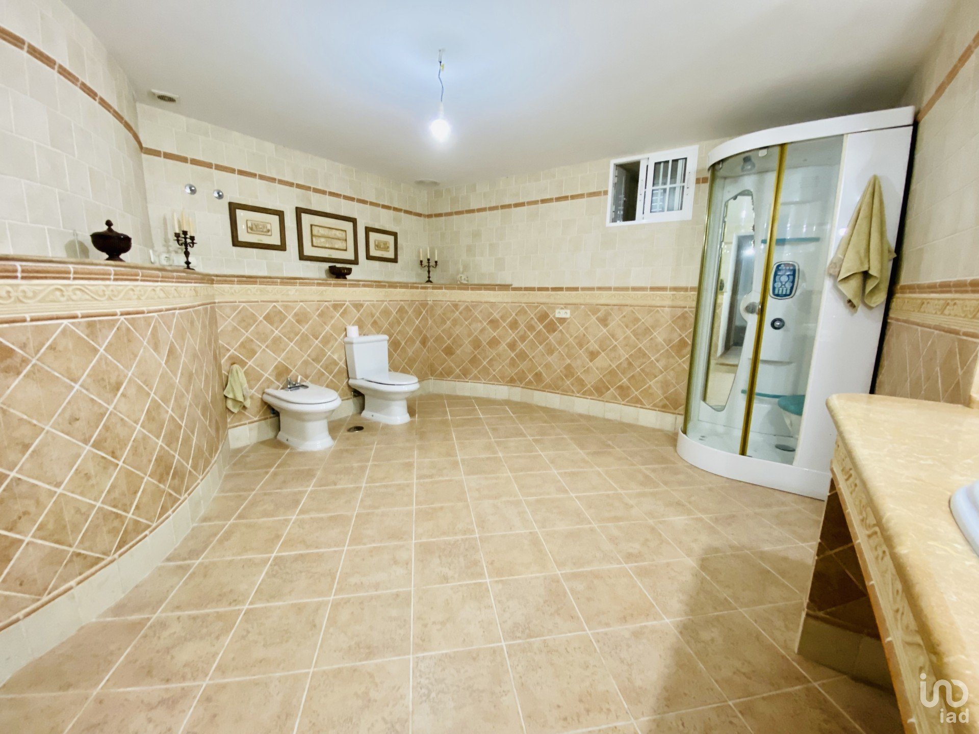 Main house of 379 m2, with 6 bedrooms and 4 bathrooms. The ground floor has a spacious entrance, a complete bathroom and a bright kitchen with access to the outside. In addition, two large bedrooms, one en suite with a luxurious bathroom. The 46 m2 living room offers a panoramic view of the swimming pool. The impressive and spacious basement houses another living room with fireplace, two bedrooms and a bathroom of 18 m2.