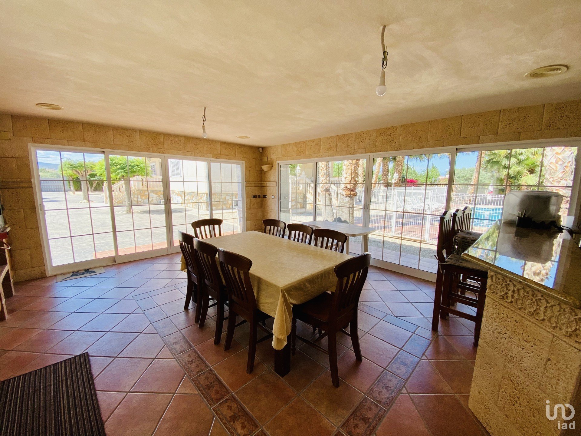 Barbecue room next to the large swimming pool of 34 m2, equipped with kitchen, barbecue, bar and bathroom. Perfect for events and outdoor enjoyment. The lounge has air conditioning.