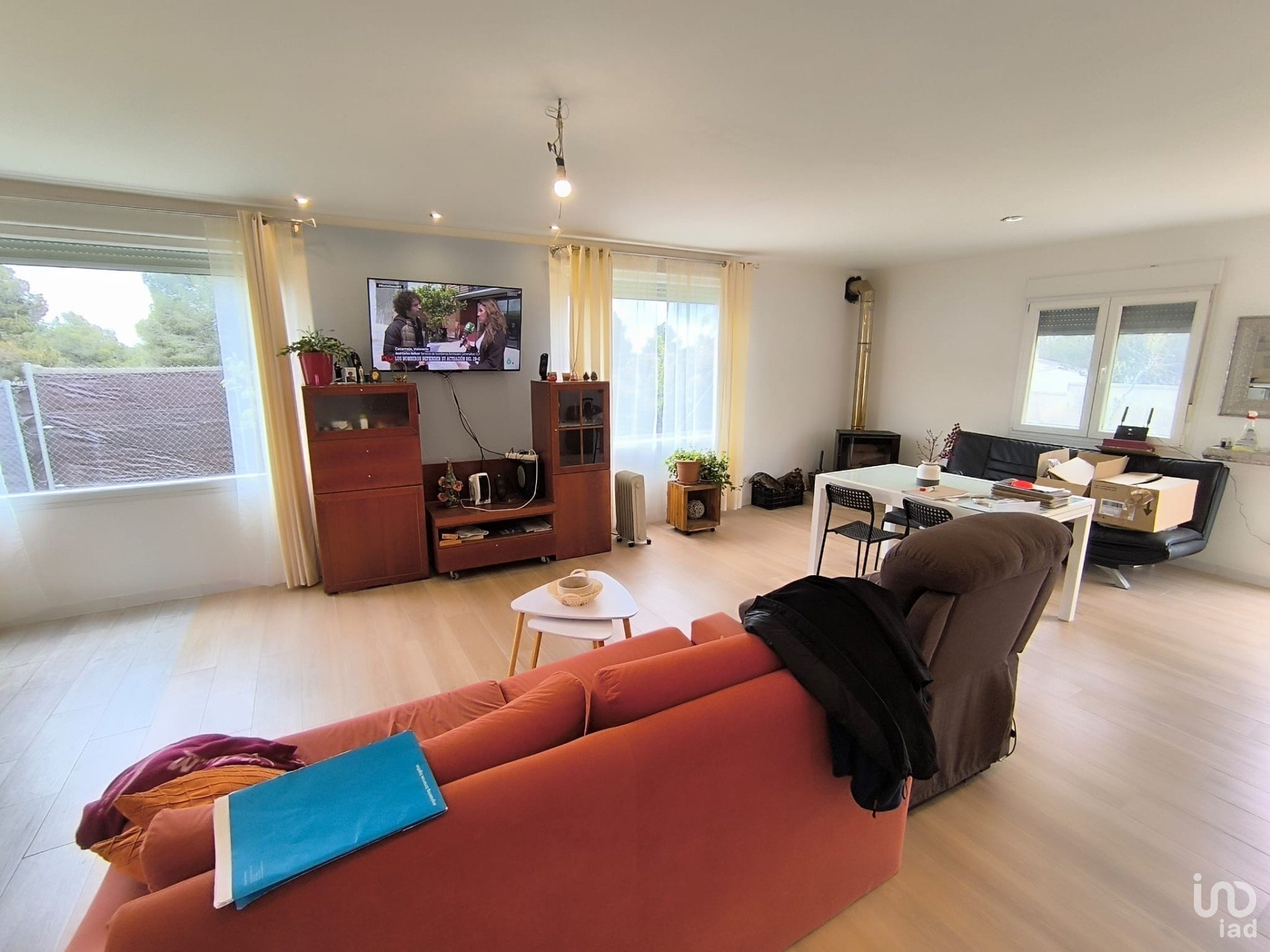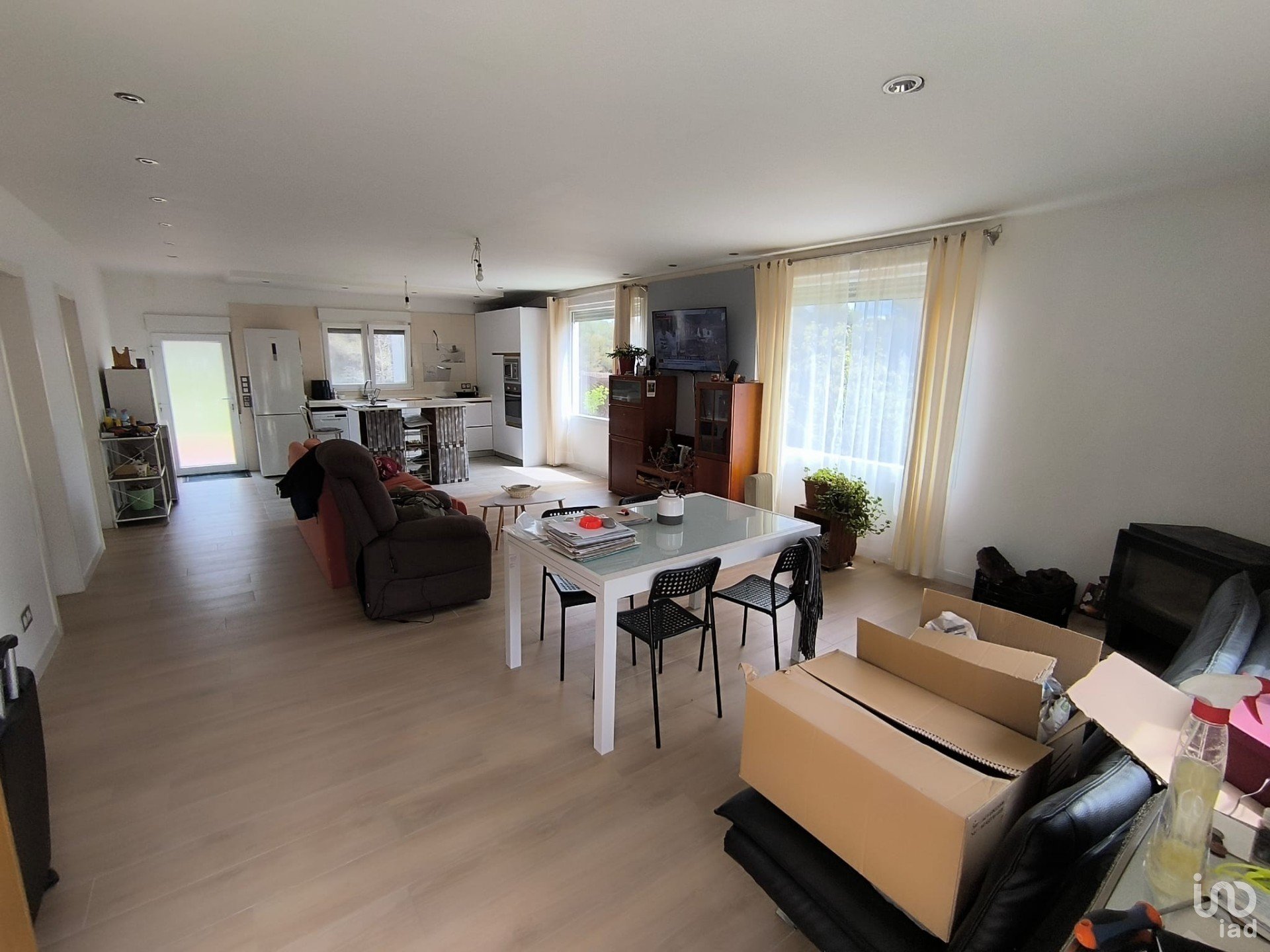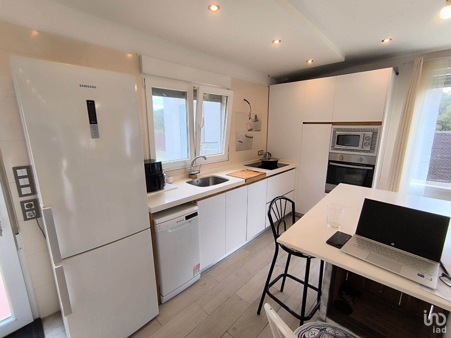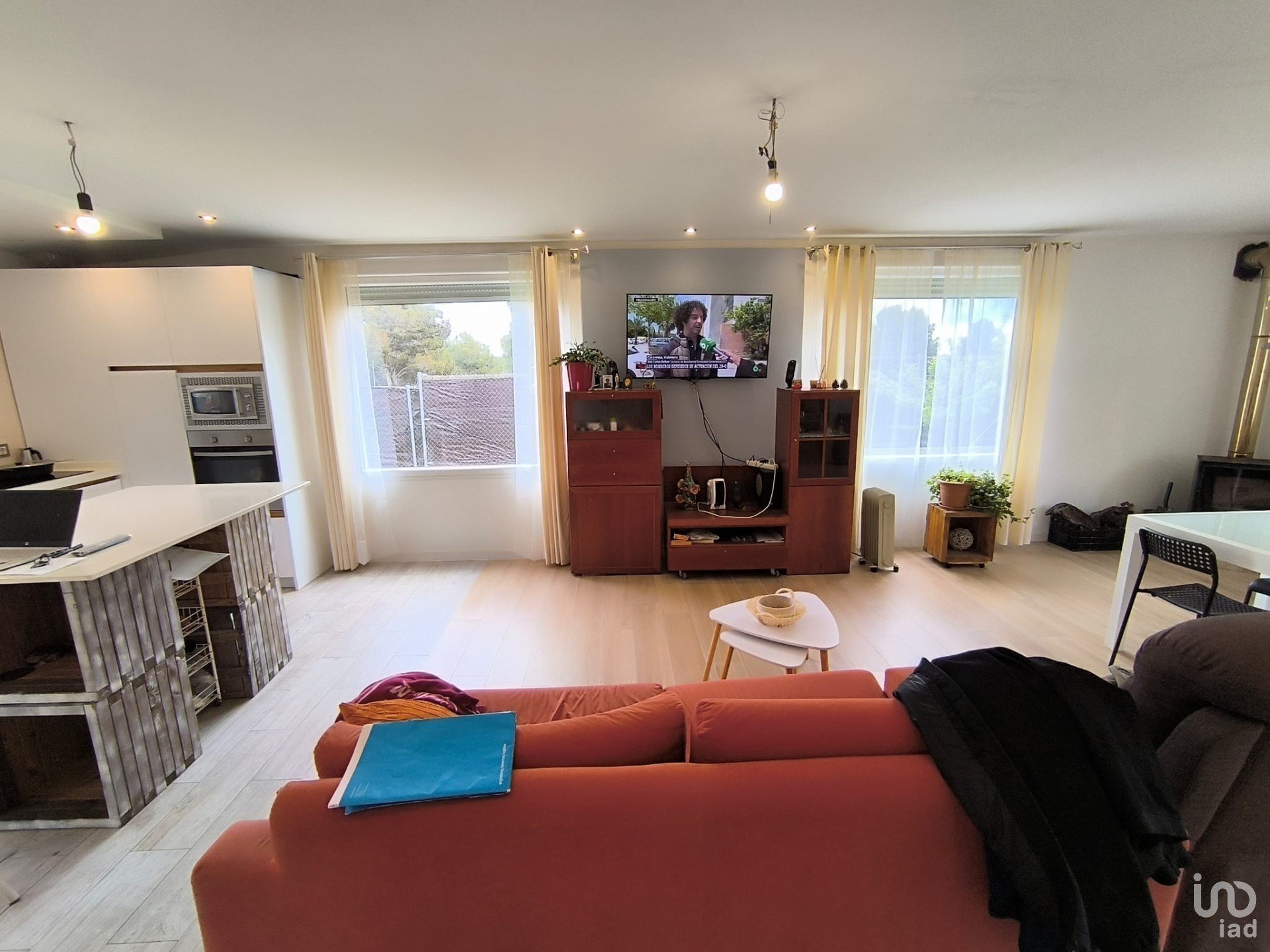 Amplio salón con comedor y cocina moderna, totalmente equipada.