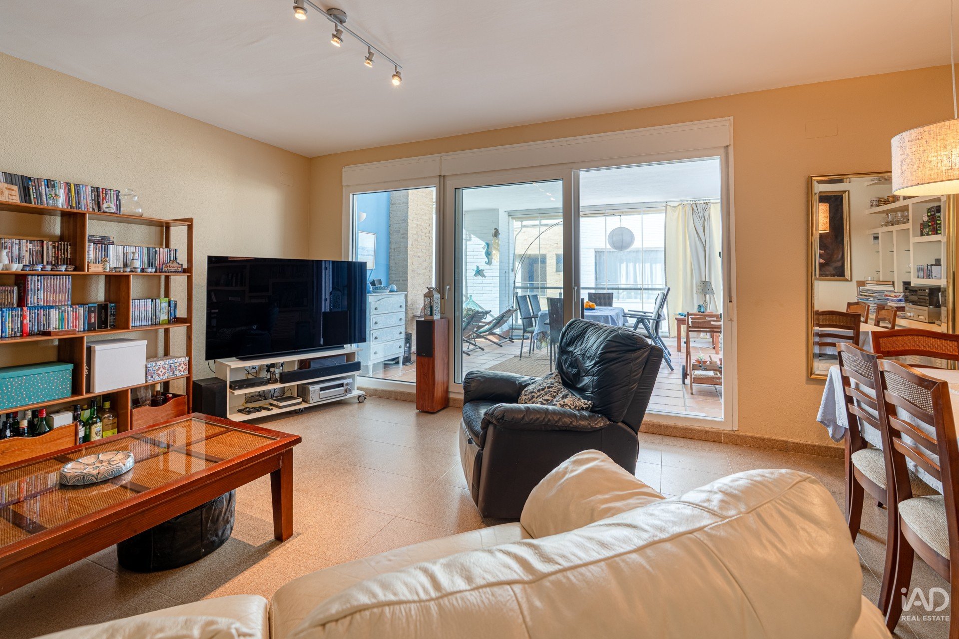 El salón comedor, hermoso y confortable, se conecta directamente con las terrazas, aportando gran luminosidad y sensación de amplitud.