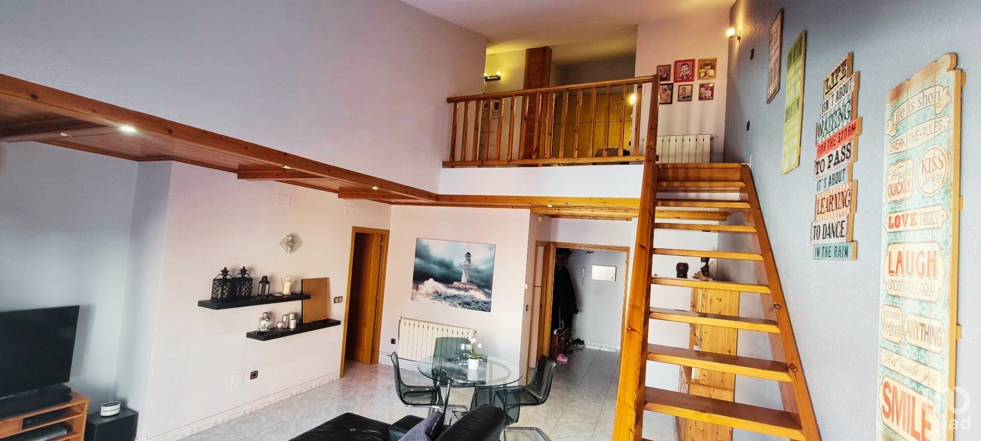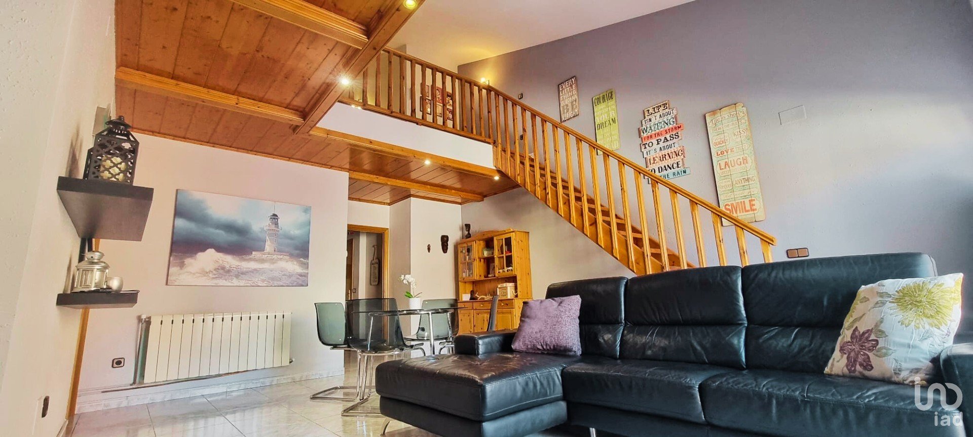 A través de una bonita escalera de madera accedemos a la planta superior donde encontramos tres habitaciones más: una con techo abuhardillado, un vestidor y un segundo baño. La distribución de esta planta nos permitirá dar el uso que queramos a cada una de las estancias: dormitorios, despacho o sala de estar.
