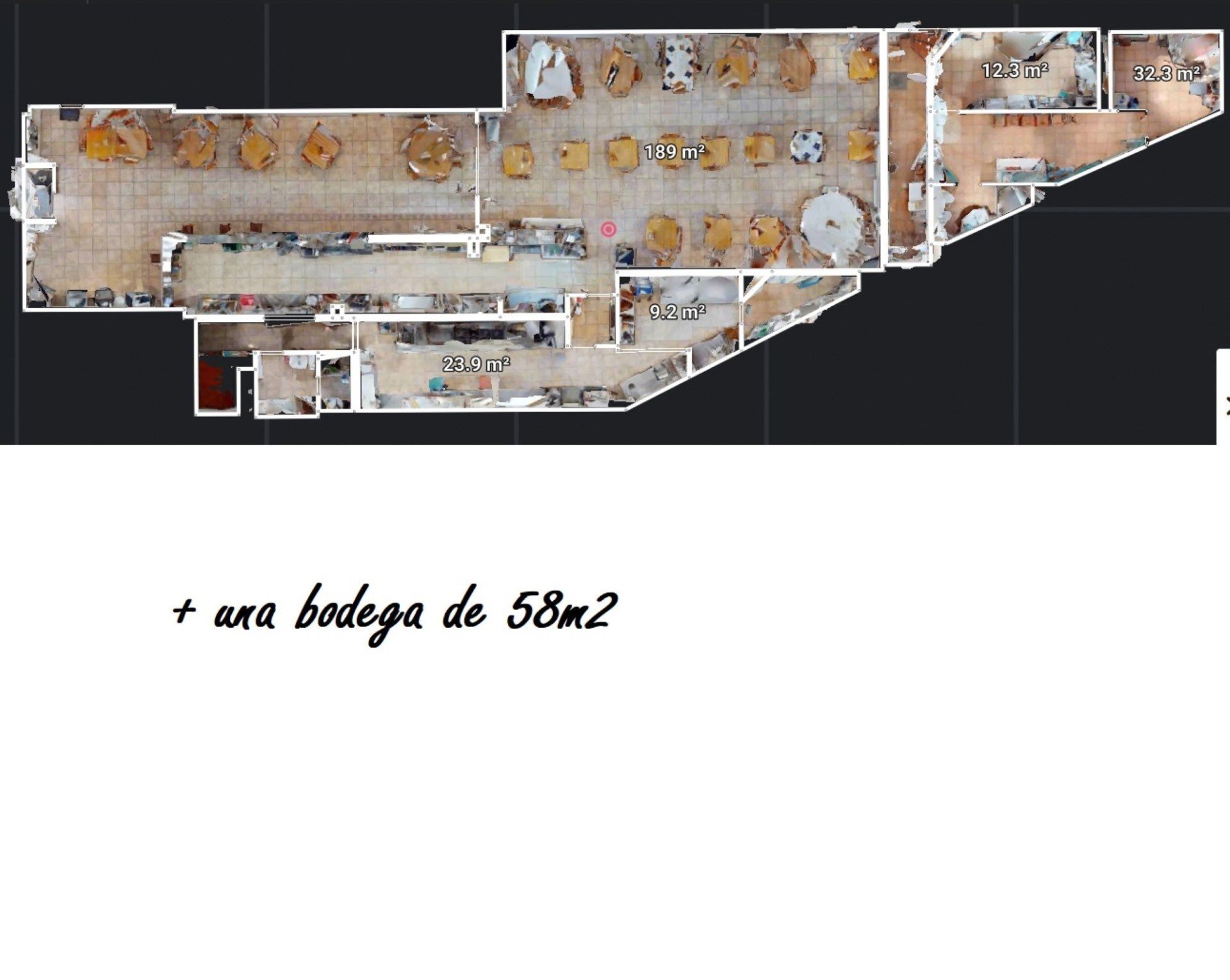 • Salle à manger + zone bar avec comptoir de plus de 15 mètres