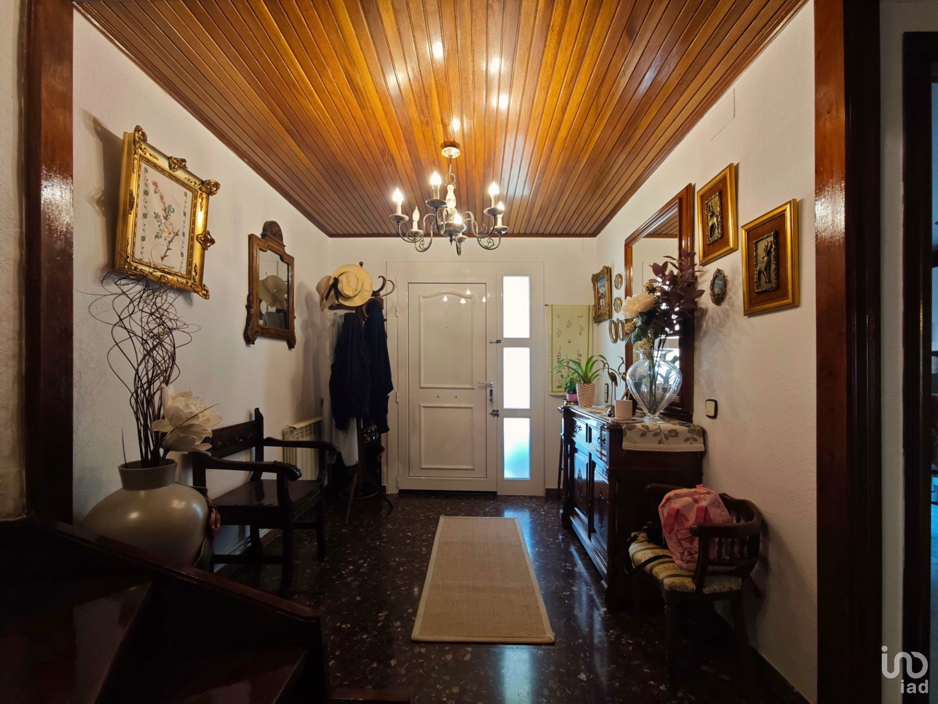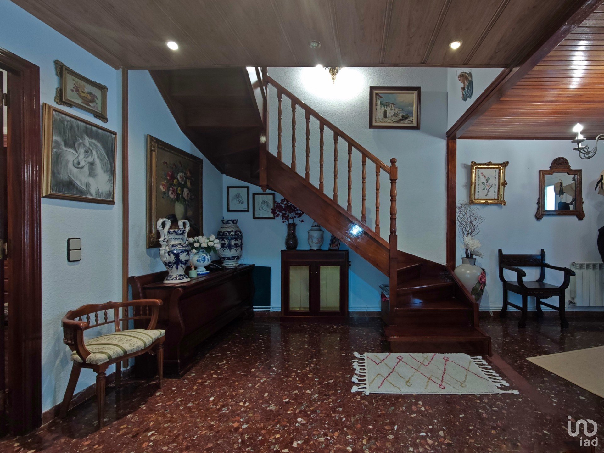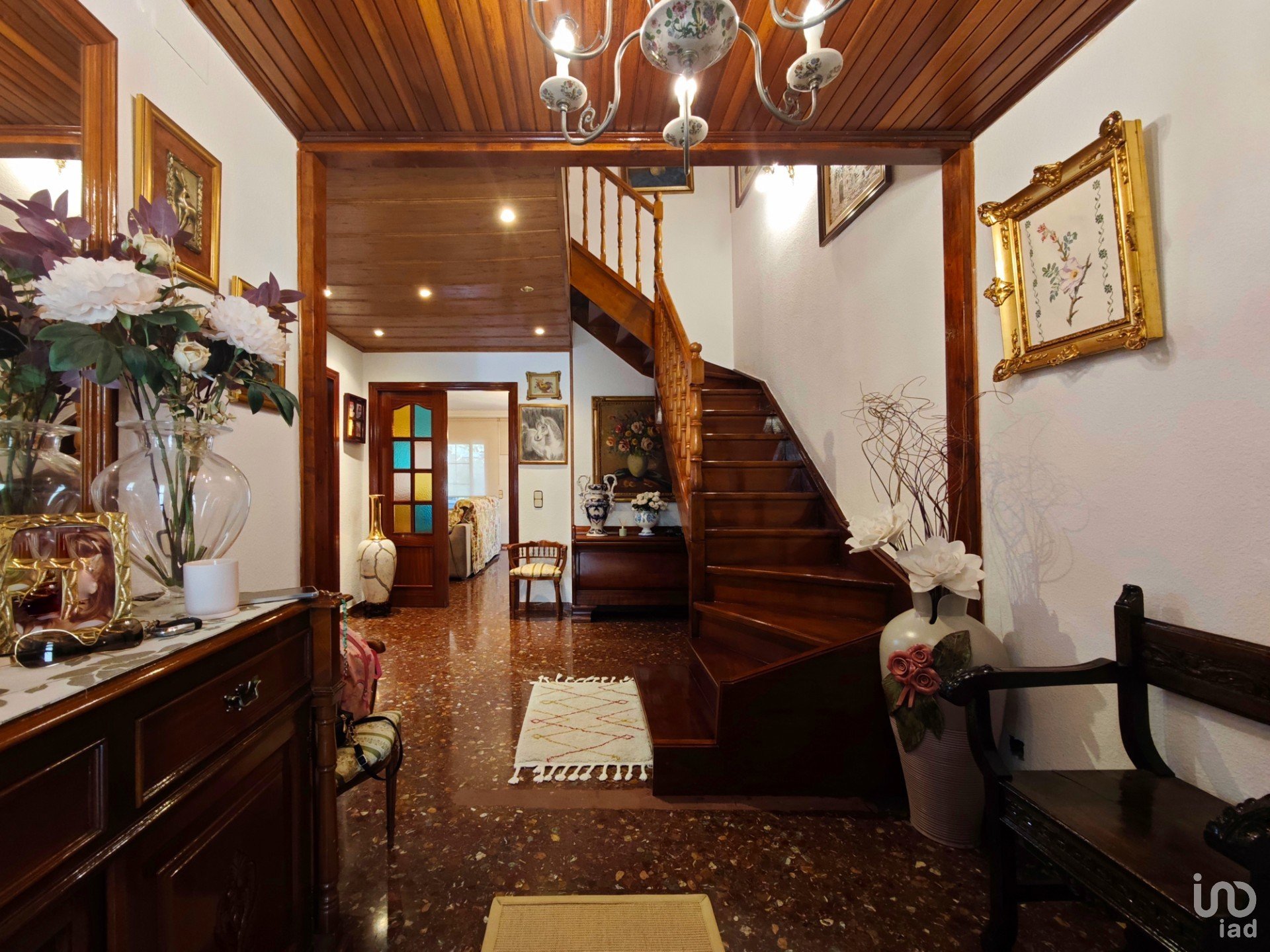Al entrar, un amplio recibidor con una elegante escalera de madera da la bienvenida al hogar y conecta con las plantas superiores.