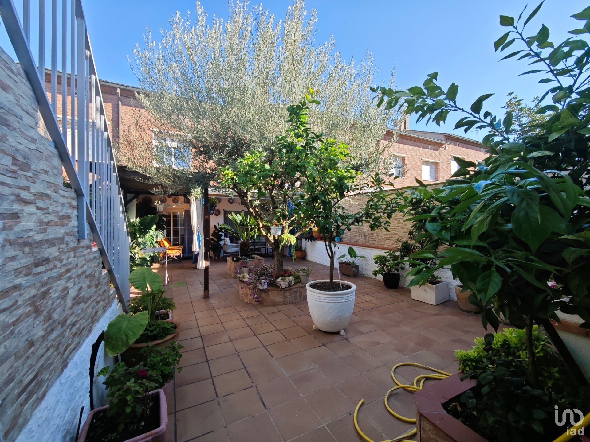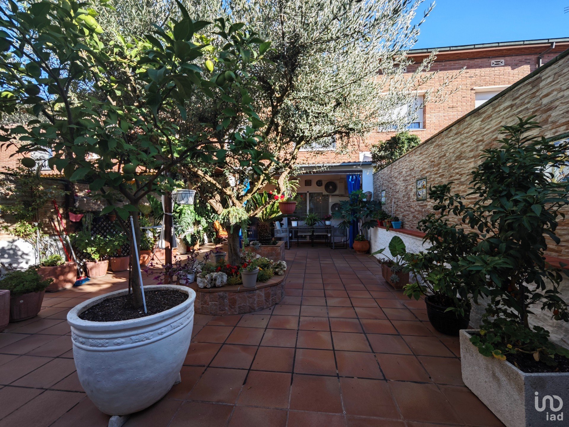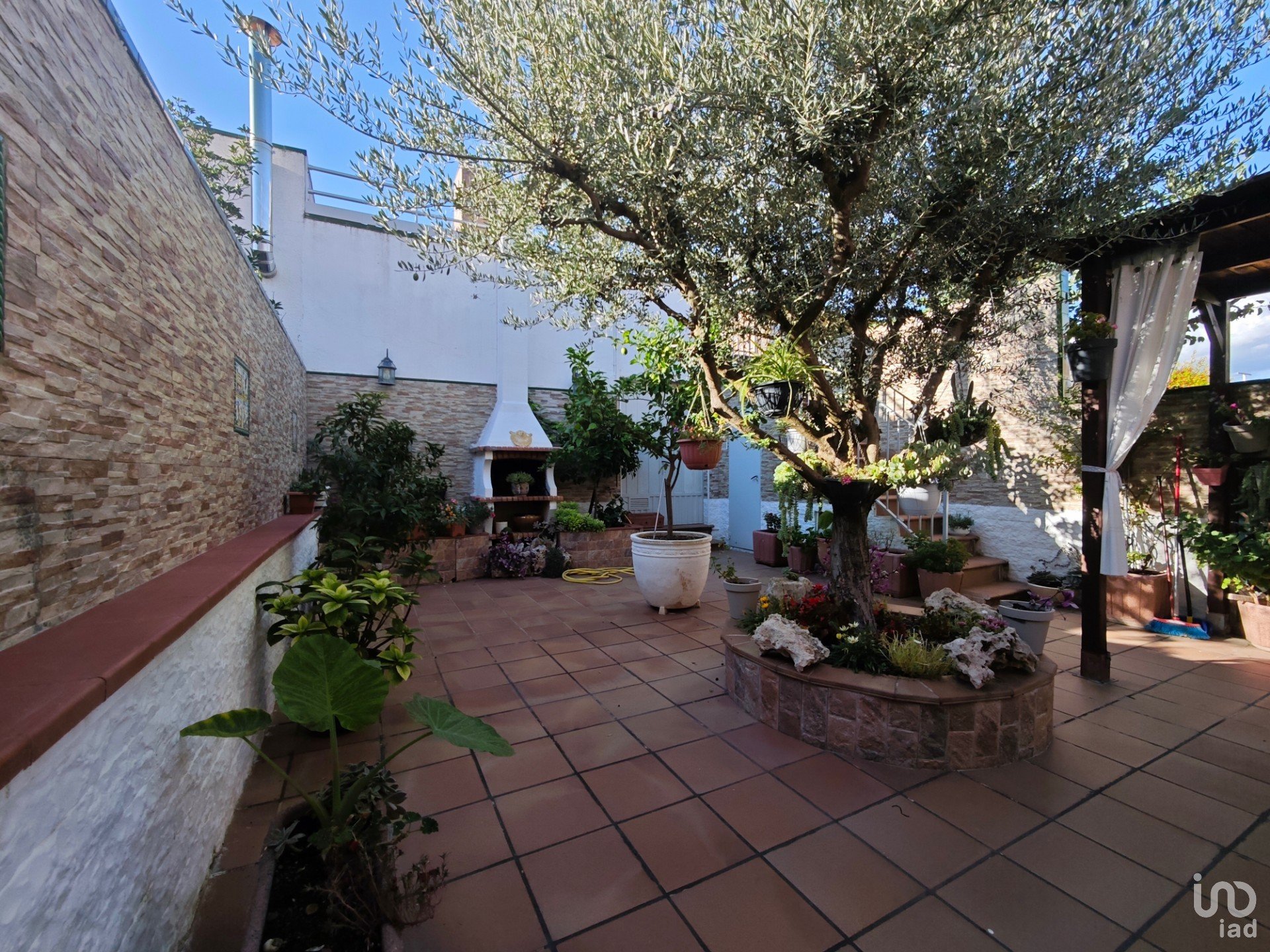El comedor-sala de estar, amplio y muy luminoso, cuenta con chimenea y aire acondicionado, creando un ambiente cálido y acogedor durante todo el año. Desde aquí se accede directamente al patio privado, un rincón lleno de vida con barbacoa, un espacio para disfrutar de las plantas, con una palmera y un olivo precioso, ideal para disfrutar del aire libre y las reuniones con amigos y familia.
