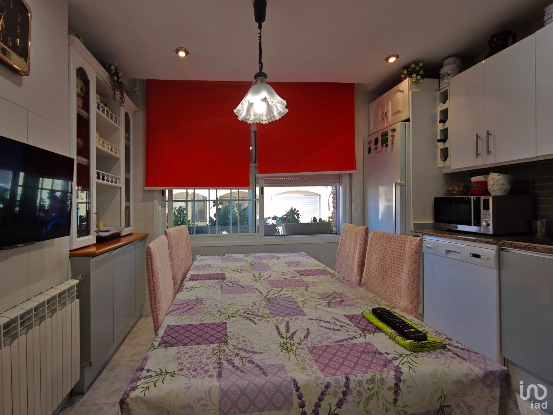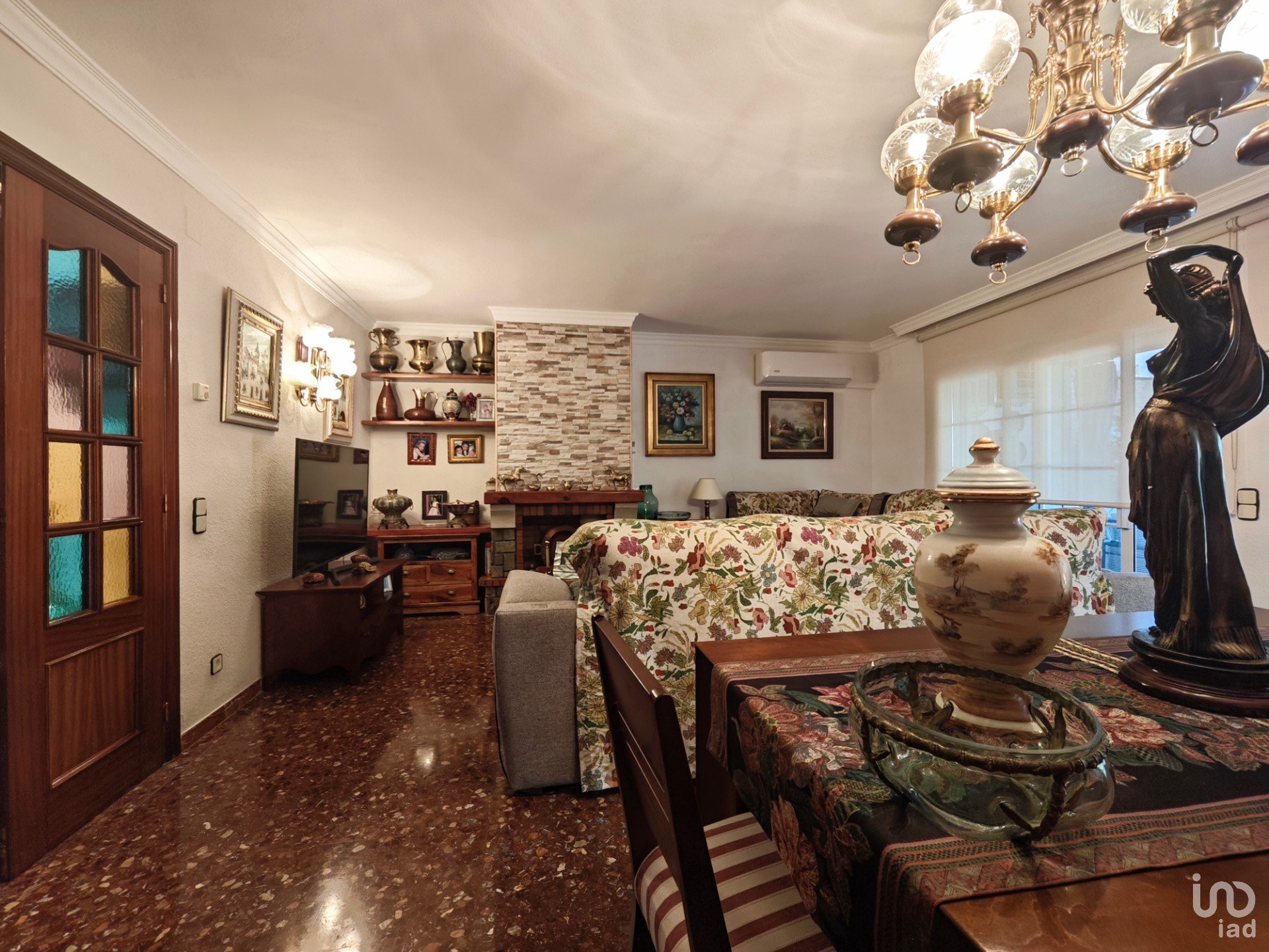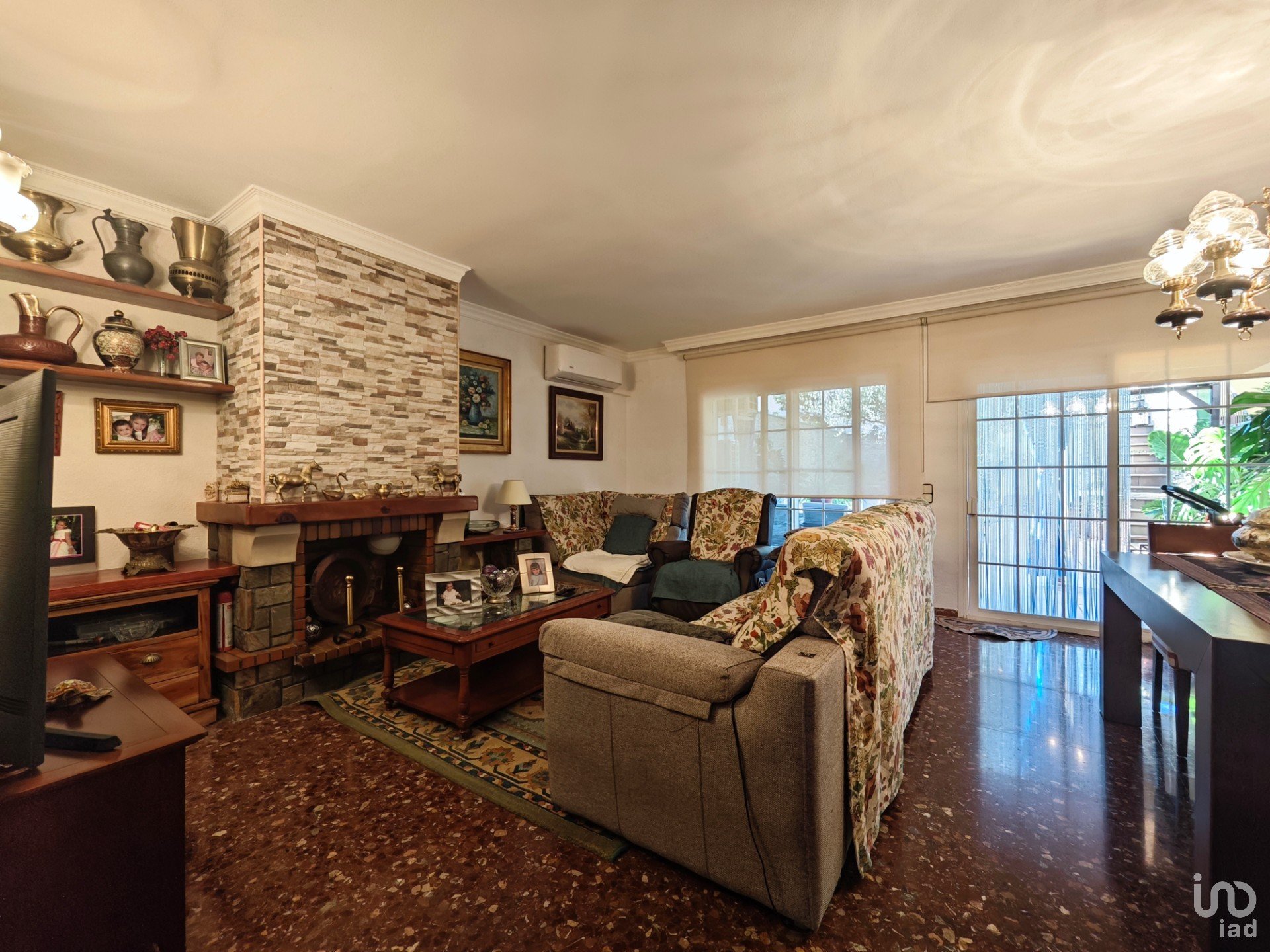 El comedor-sala de estar, amplio y muy luminoso, cuenta con chimenea y aire acondicionado, creando un ambiente cálido y acogedor durante todo el año. Desde aquí se accede directamente al patio privado, un rincón lleno de vida con barbacoa, un espacio para disfrutar de las plantas, con una palmera y un olivo precioso, ideal para disfrutar del aire libre y las reuniones con amigos y familia.