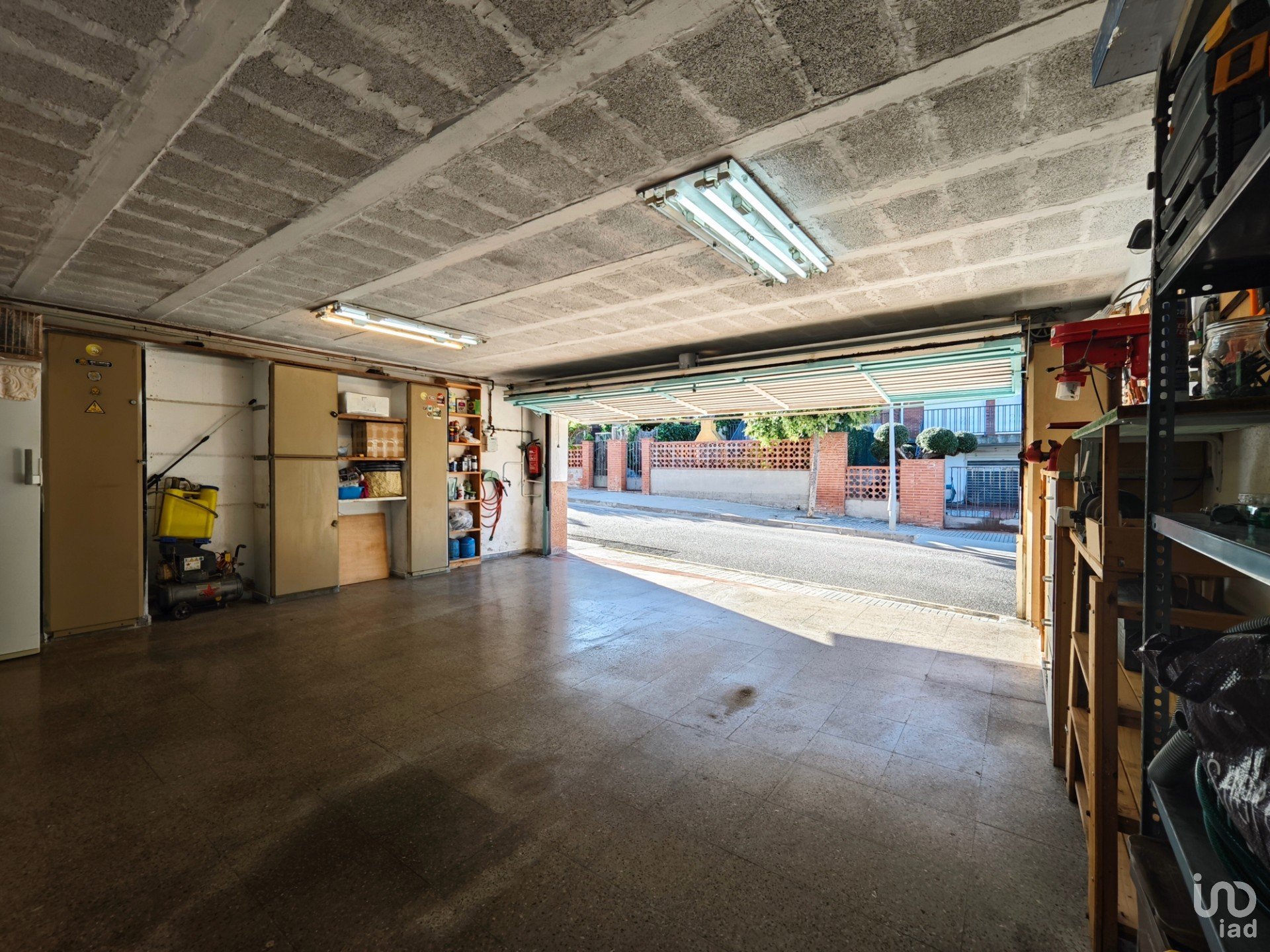El garaje independiente destaca por su gran amplitud, con espacio no solo para dos coch**, sino también para almacenaje, zona de taller o actividades adicionales. Tiene acceso desde la calle trasera y comunica directamente con el patio. Sobre él, una terraza adicional que amplía las opciones de disfrute al aire libre.