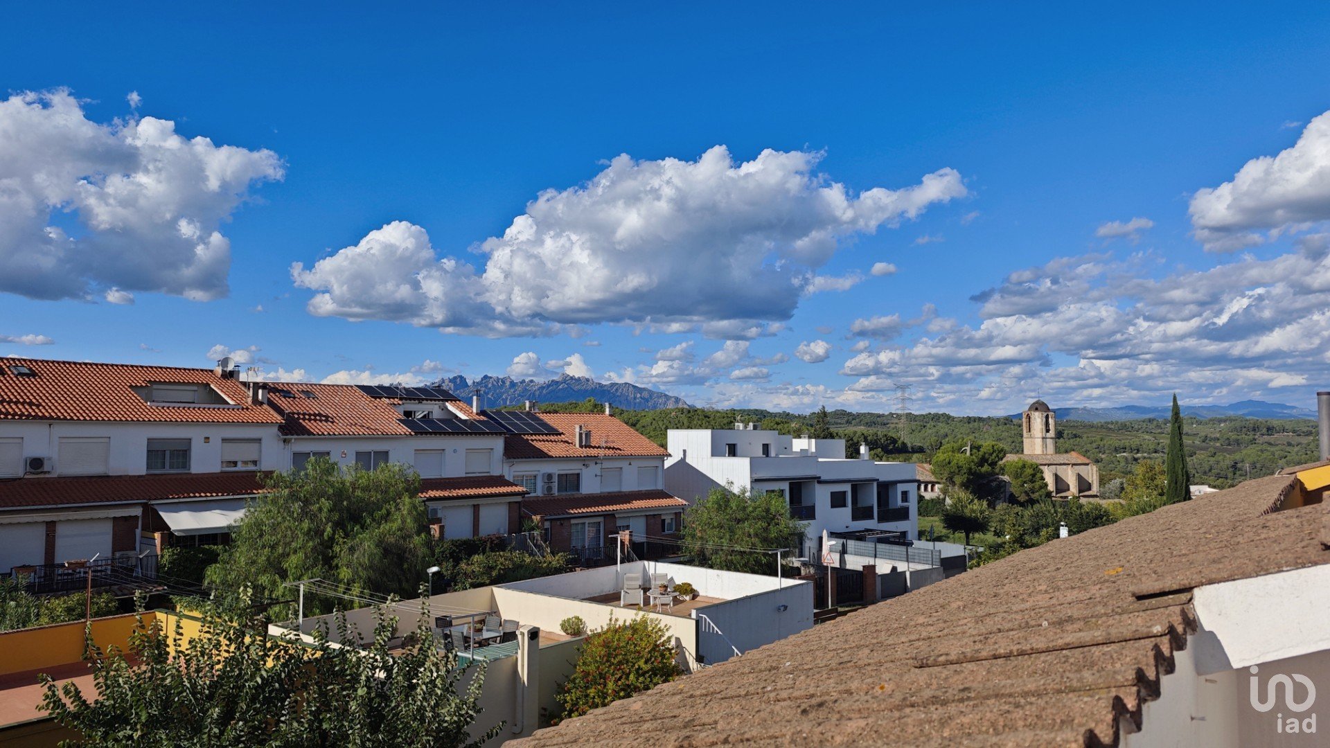 El bajo-cubierta alberga un amplio estudio con trastero y salida a una terraza con vistas a Montserrat, perfecta como despacho, sala de ocio o dormitorio adicional.