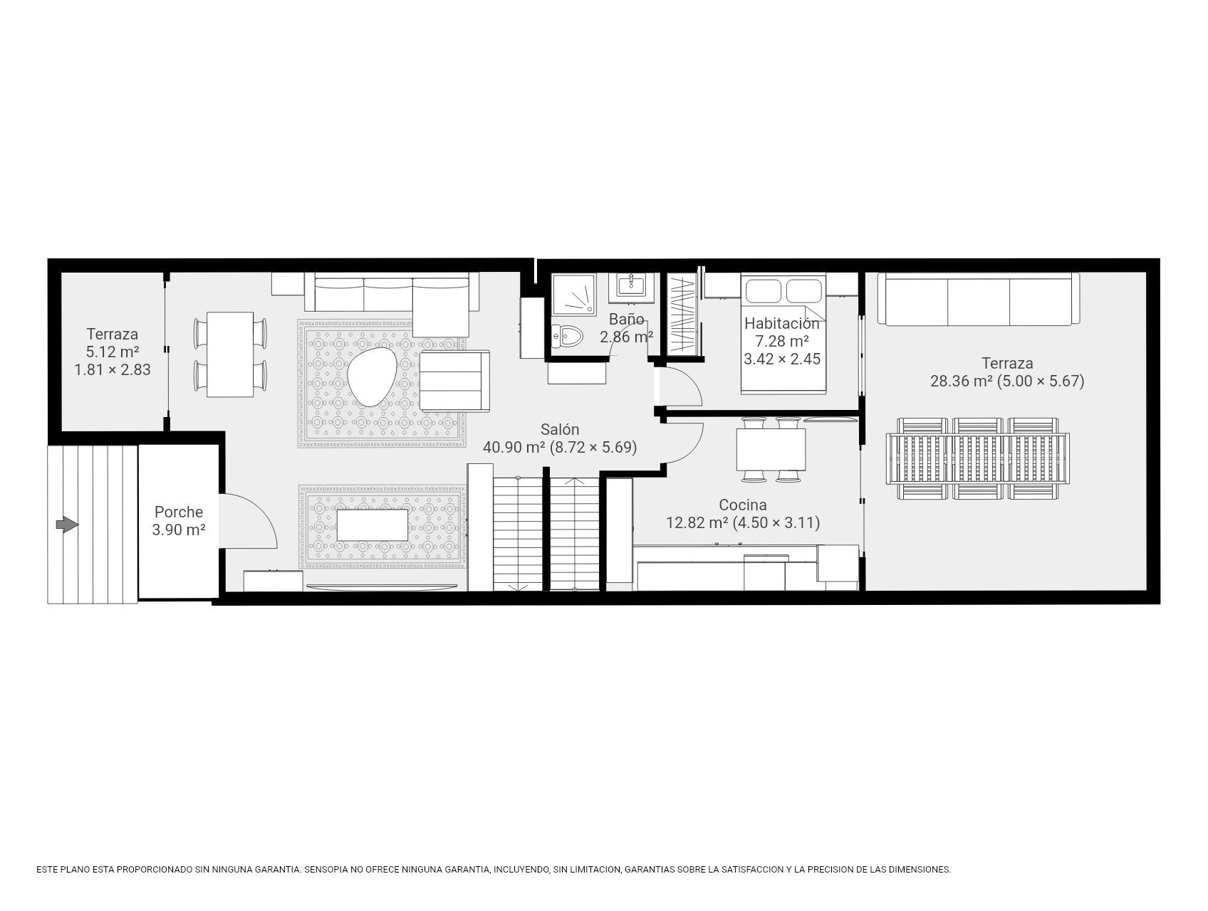 • Rez-de-chaussée : grand salon-salle à manger, cuisine entièrement équipée, une chambre, une salle de bains et deux terrasses (dont une très grande avec vue sur la mer).